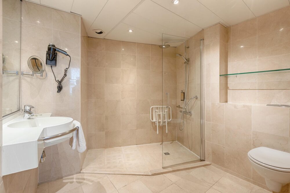 Pour garantir un séjour confortable pour tous nos visiteurs, l’une de nos chambres doubles est entièrement équipée pour accueillir les personnes à mobilité réduite (PMR).