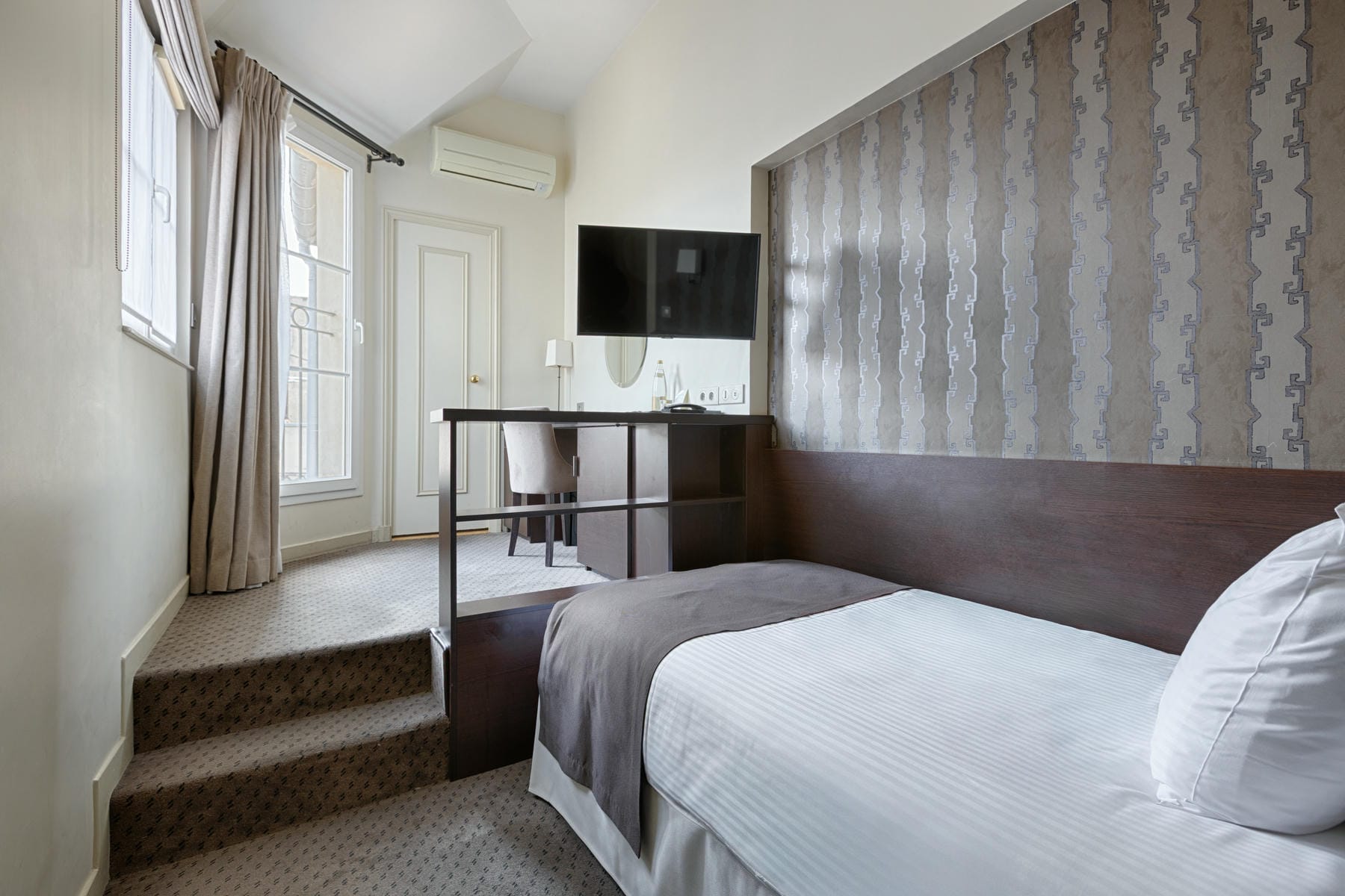 Notre chambre Simple s’adresse aux voyageurs en solo qui recherchent un pied-à-terre intime au cœur de la capitale.